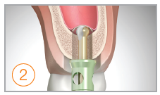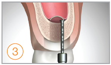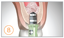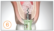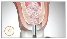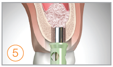 Bone Inserter. Umieść wiertło w centrum łoża implantologicznego a następnie powolnym i pewnym ruchem rozprowadź biomateriał. Zastosuj stoper 1mm i ustaw prędkość na 80 rpm